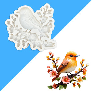 新しい花の枝の上の鳥スズメフォンダンシリコーン型チョコレート diy ケーキデコレーションベーキングモールド