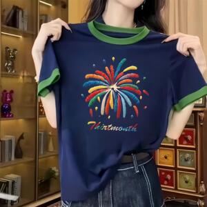 グリーンカラー【3D花火プリント右胸】ピュアコットン、毛玉なし