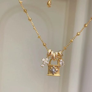 ブラッシュ加工ランニングリングクロスロックバッグネックレスライト高級ハイエンド鎖骨チェーンニッチ新しいセーターチェーン