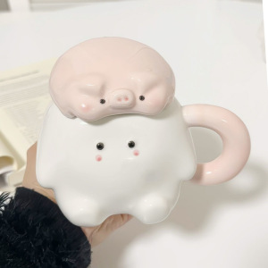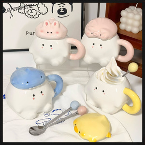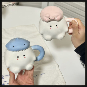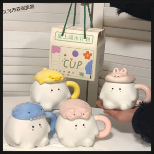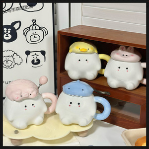 呆萌可爱陶瓷马克杯生日礼物女生学生伴手礼情侣对杯带盖陶瓷杯子