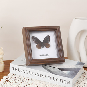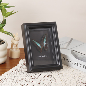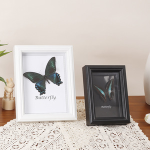 フォトフレーム中空 2 センチメートル木製リアルガラス立体黒蝶昆虫額装テーブルディスプレイ額縁標本フレーム