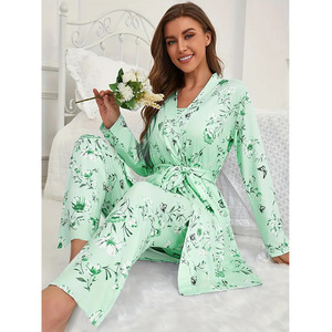 クロスボーダープラットフォーム工場在庫ホームパジャマヨーロッパとアメリカのサイズのナイトガウンズボンサスペンダーナイトガウンスリーピーススーツ