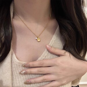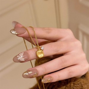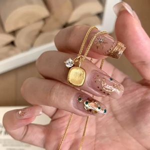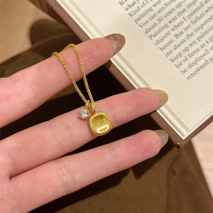 韓国版のインターネットセレブのブラッシュシュガーキューブストーンペンダントネックレスレディースイエローゴールド多用途鎖骨チェーンライト高級ハイエンドアクセサリー