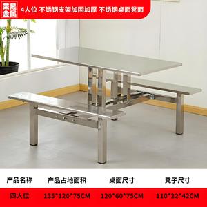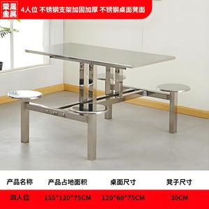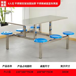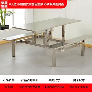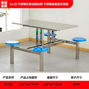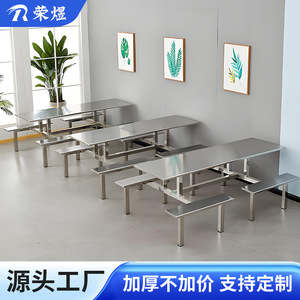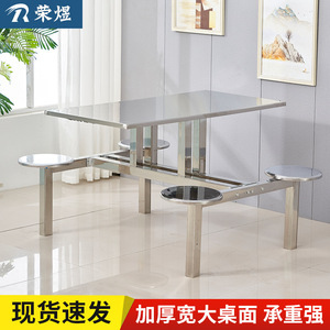 ステンレス製食堂テーブル学校工場食堂レストラン4/6/8人用強化一体型ファーストフードテーブルと椅子の組み合わせ
