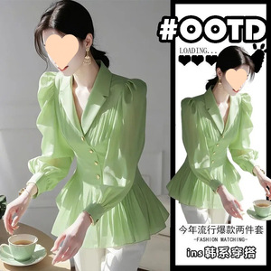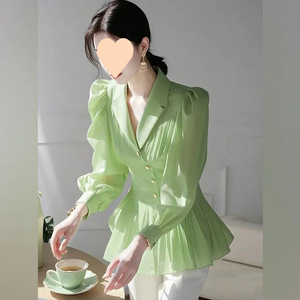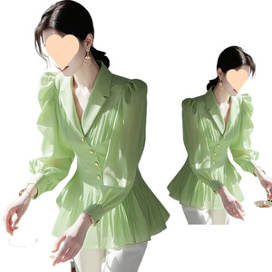 ドーパミン美しい女性用シャツ 2025 春の新作フレンチスタイルのハイエンドの見栄えの良いグリーンシャツ