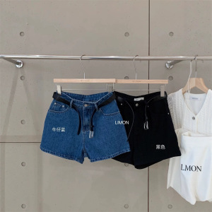 水洗夏季新款深蓝色高腰阔腿牛仔短裤女A字阔腿遮肉显瘦休闲热裤