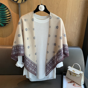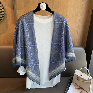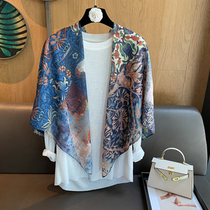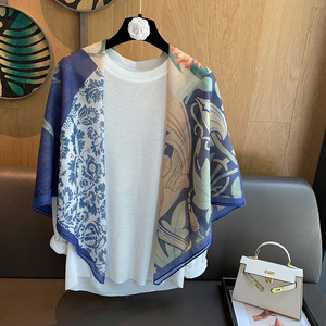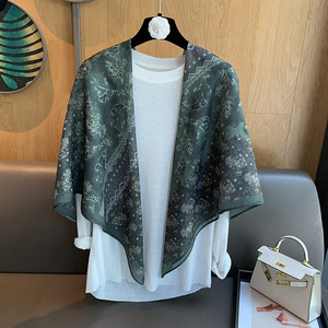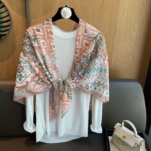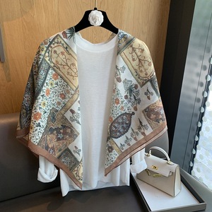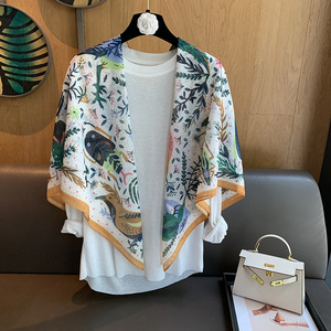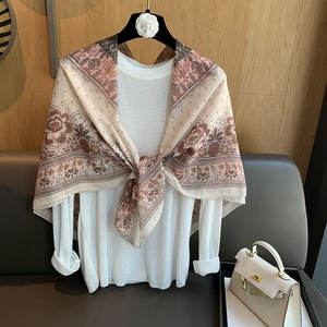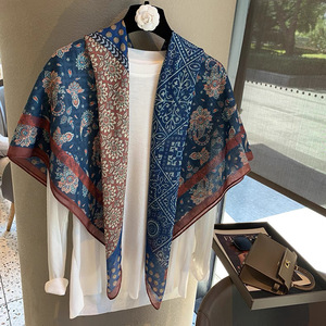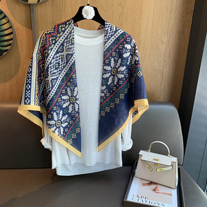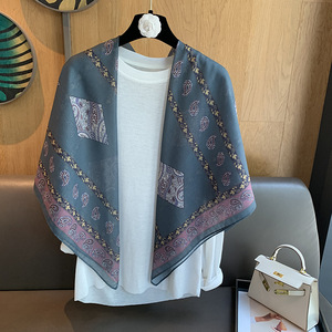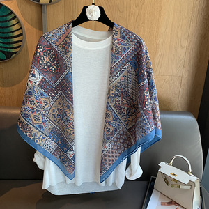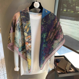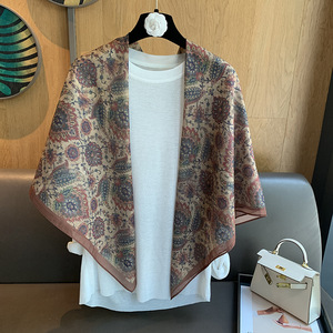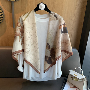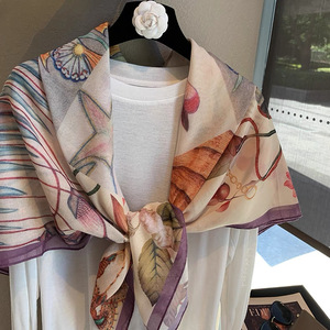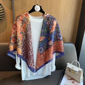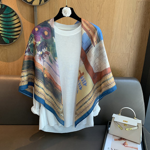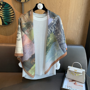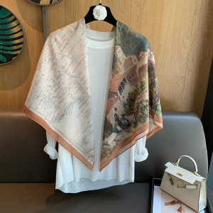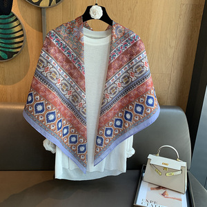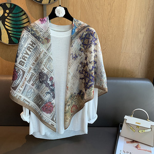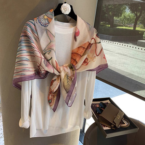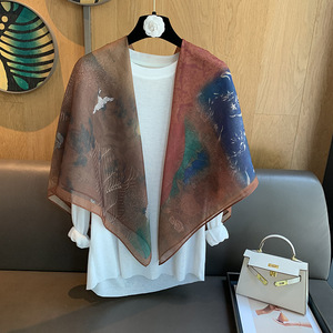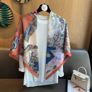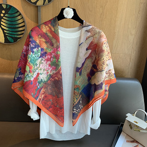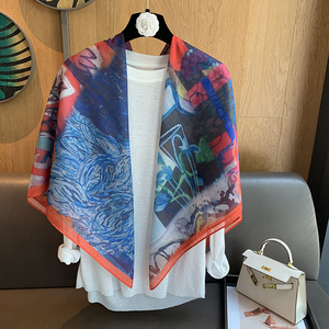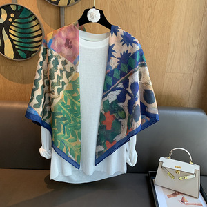 スカーフ女性 2025 春の新韓国スタイルレトロカラーマッチング落書き大正方形スカーフ多用途スカーフシルクスカーフ女性ショール兼用