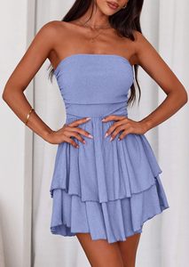 Amazon レディース 2025 夏 ストラップレス チューブトップ ミニドレス オフショルダー プリーツ Aライン エレガント ショートドレス