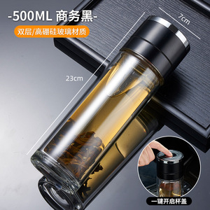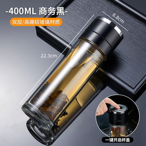 男士泡茶专用杯一键开盖玻璃水杯男2025新款高硼硅防摔防爆茶杯