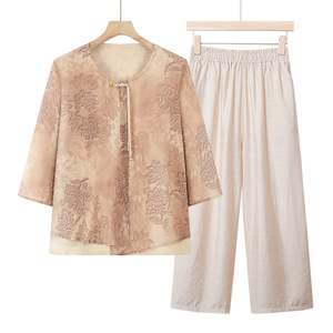 おしゃれなママのサマースーツ、おしゃれなおばあちゃんの服、薄手の母の日の服、中高年向けの中国風シャツ