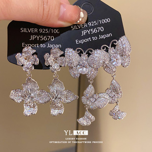 シルバー針ライト高級スタイルジルコン蝶の花のイヤリングヨーロッパとアメリカのファッション個性ニッチ気質ハイエンドイヤリング女性用