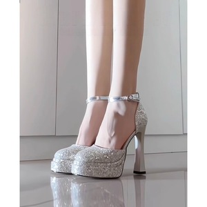 法式玛丽珍鞋2025新款防水台高跟鞋女细跟超高跟新娘婚纱水晶单鞋