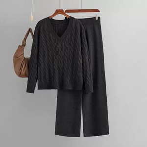 ヨーロッパとアメリカのファッションワイドレッグパンツセーター婦人服2025秋冬新作クロスボーダーツイストVネックニットスーツ