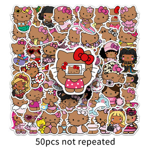 50 黒革 kt 猫漫画アニメーション楽しい周辺パーソナライズされたステッカーノートブックスクーター冷蔵庫ステッカー卸売