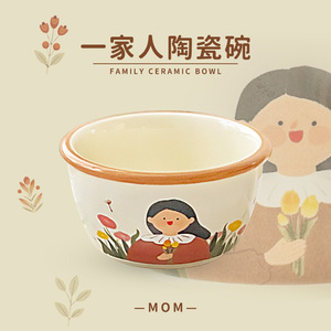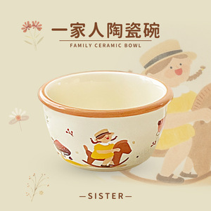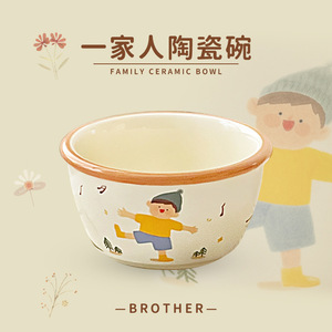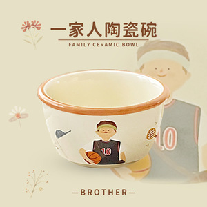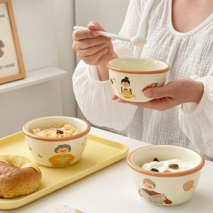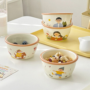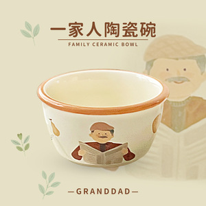 かわいい漫画の家族のセラミックボウル、見栄えの良い家庭用ライスボウル、スープボウル、個人用漫画セット食器