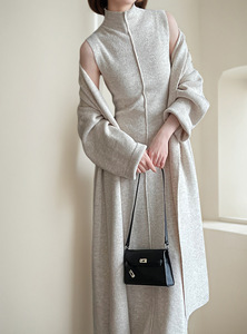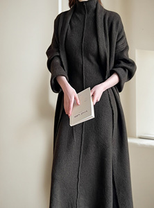 フレンチロングニットワンピース、ハイネックノースリーブベストワンピース、コート、カーディガン、セーターワンピース2枚