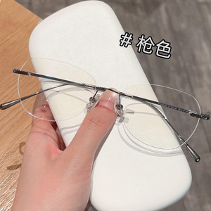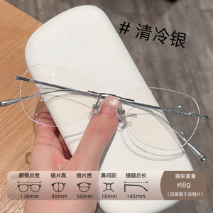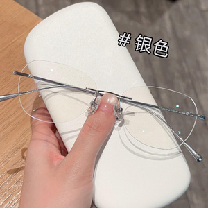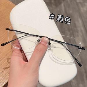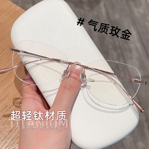 新しい超軽量レトロフレームレスチタンフレームメガネフレーム、女性用、ハイエンド、無地のアーティファクト、近視メガネと組み合わせることができます。