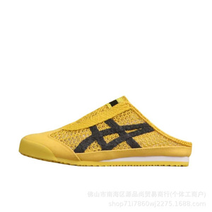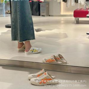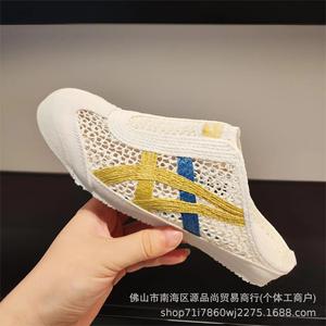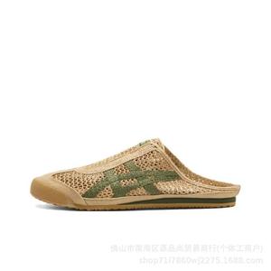 莆田工場の新しい鬼塚虎織りメッシュハーフトゥサンダル、軽量、薄型、通気性、フラットソール、快適でファッショナブルなスリッパ