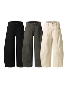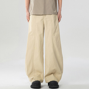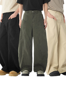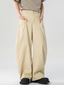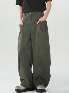 LKTM メンズ アメリカン レトロ ウォッシュド コットン シミターパンツ 男女兼用 リラックス ルーズ シルエット カジュアル ロングパンツ