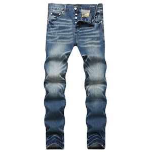 2025 新在庫 PU ブランドダークブルー猫ひげメンズストリートファッションハンサムスリム弾性小足ズボン