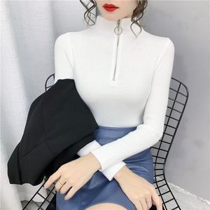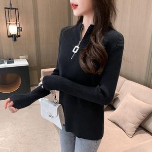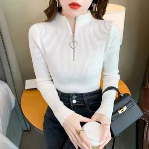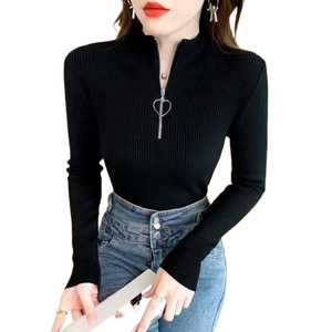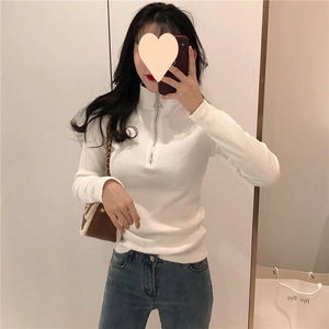 韓国風ジッパーデザインボトリングシャツ女性用春と秋の薄いスリムフィットハーフタートルネック長袖トップシャツ