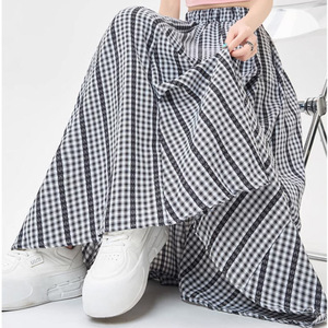 2025年新作夏スタイル、ゆったり、スリム、多用途、不規則、多用途チェック柄スカート、ミドル丈、大きな裾スカート