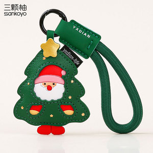 女性用レザークリスマスペンダントキーホルダー、かわいい漫画の絶妙なレザーサンタバッグペンダント小さなギフト
