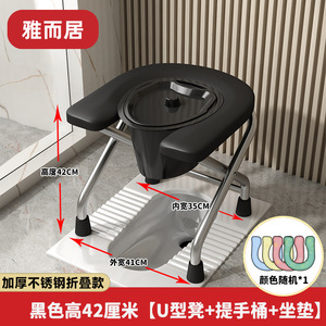 【ブラック】高さ42CM折りたたみU字型+厚いパッド+便器