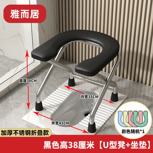 【ブラック】高さ38CM折りたたみU字型+厚いパッド+便器