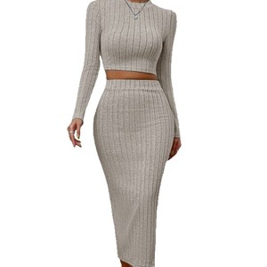 2025 ヨーロッパとアメリカの服アマゾン春カジュアルファッションラウンドネック長袖ヒップスカートニットスーツ