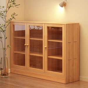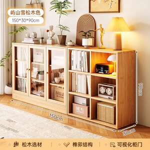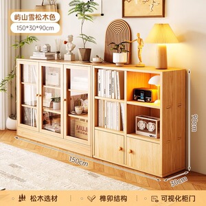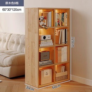 实木书柜落地置物柜防尘格子柜原木风柜子客厅收纳储物一体柜书架