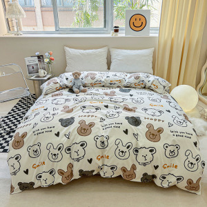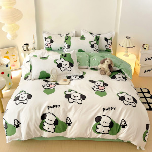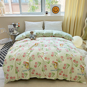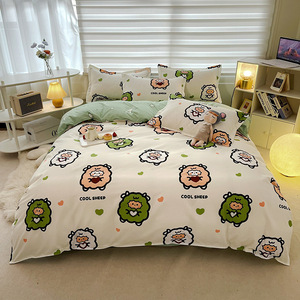 2025 春夏アロエベラコットンプリント 4 ピース漫画ベッド 4 ピースシングルキルトカバー起毛南通ホームテキスタイル
