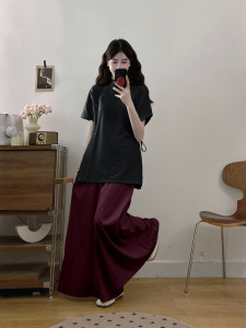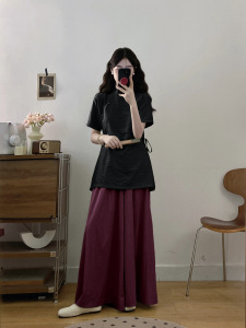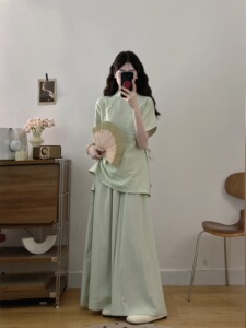 プラスサイズの婦人服新しい中国風のウエスト痩身ボタン付きトップハイウエストルーズワイドレッグパンツツーピーススーツ