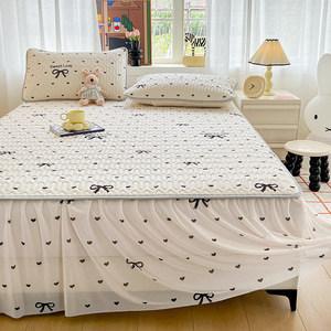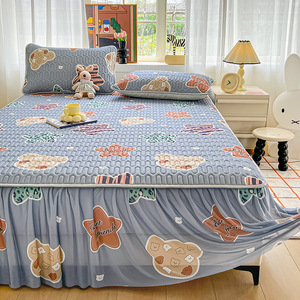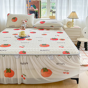夏用ラテックスベッドスカートシングルピースベッドカバー3点セットアイスシルクマットベッドシーツスカート付き2025新スタイル洗濯機で洗えます
