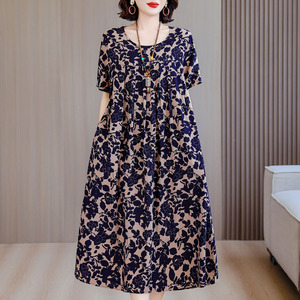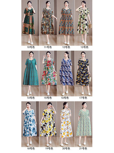 中高年女性向けの夏の綿シルクドレス、プラスサイズのゆったりとした若い母親のホームウェアとネグリジェは屋外でも着用できます。