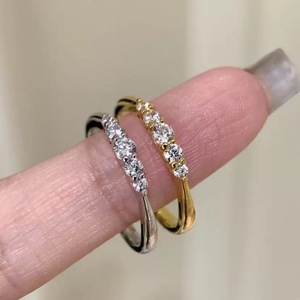 S925 スターリングシルバー グラデーション ダイヤモンド プレーン リング ミニマリスト コールド スタイル 多用途 オープン調整 スモール テール リング ファッション 通勤