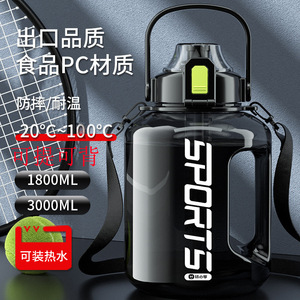 【茶倉庫モデル】スポーツブラック 3.0L 【熱湯充填可能】輸出PC+目盛付+ストロー+ハンドル+ストラップ+火傷防止パッド 仕様なし