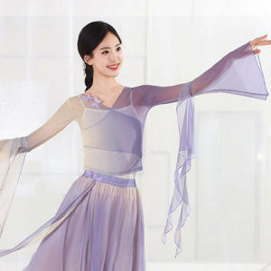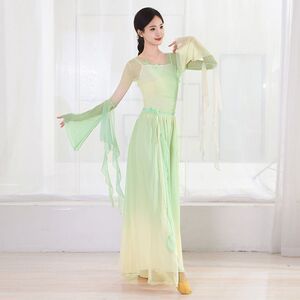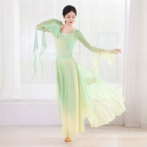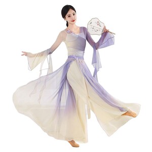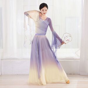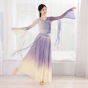 古典舞踊、グラデーションのエレガントなガーゼ、中国のパフォーマンス衣装、妖精のダンス衣装、練習用スイングスカート