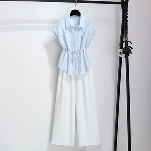 ブルーテンセルノースリーブウエストシャツベストワイドレッグパンツ女性のための 2025 夏の新しいハイエンドツーピーススーツ