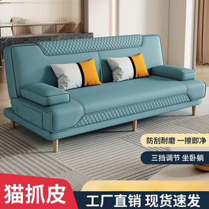 多機能シンプルな折りたたみソファベッド、小さなアパートのリビングルーム、猫スクラッチレザー、リクライニングと睡眠可能なレイジーソファ