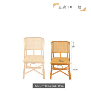 小さな籐の椅子、低い背もたれの椅子、昔ながらのカジュアルな天然織りの大人用本物の籐の家庭用高齢者バルコニーシングル