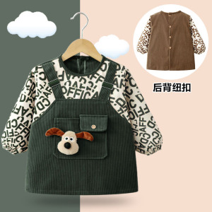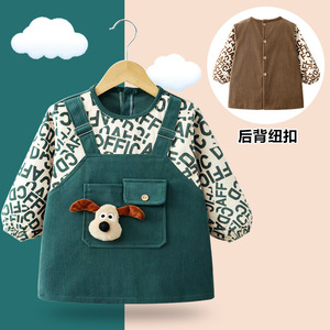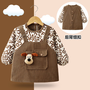可爱卡通小狗宝宝长袖罩衣 外穿防水儿童婴儿吃饭辅食围裙围兜
