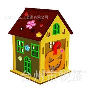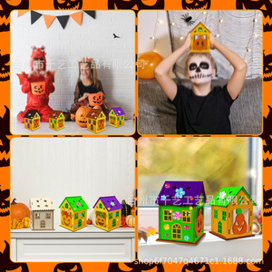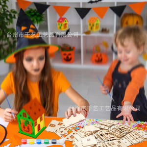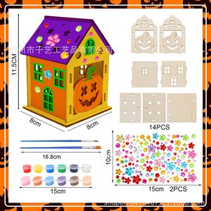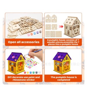 クロスボーダーハロウィン木製カボチャハウス工芸品子供用DIY3D塗装カボチャハウスアートと工芸品