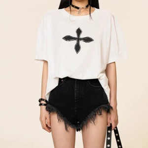 秋の新作 SMFK ドリームクロスフラワーレトロラウンドネックワイドTシャツ3色オプション半袖ルーズTシャツ女性用