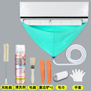 分解不要のエアコン水受けカバー、洗浄剤ツール一式、水受け袋、内外機吊り下げ機汎用洗浄セット