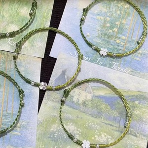 春の緑の四つ葉のクローバーブレスレット女性用ニッチファッションガールフレンドブレスレットフォレストスタイル多用途牧歌的なスタイル甘いギフト