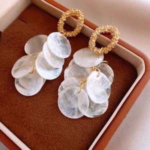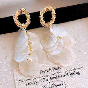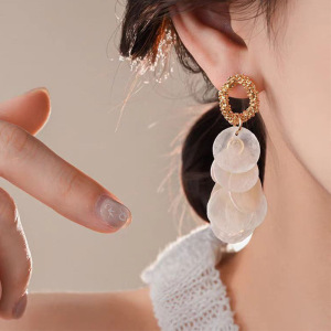 2025 新花柄マザーオブパールレトロイヤリング女性のホットスタイル特別なデザインタッセルイヤリングハイエンドイヤリング夏