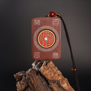 枣木掐丝嵌银百无禁忌可转动山鬼花钱挂件文玩无事牌朱砂珠带挂绳