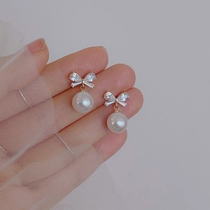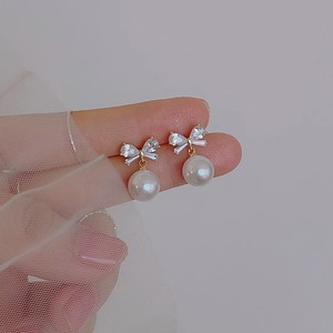 甘い気質のリボンパールイヤリング、女性のファッショナブルでハイエンドの軽い高級ジルコンイヤリング、絶妙で優しい小さなイヤリング
