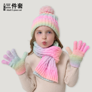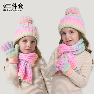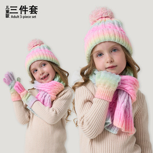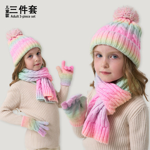 国境を越えた新しいヨーロッパとアメリカの子供用帽子、スカーフ、手袋の3点セット、秋と冬のベルベットの厚みのあるシングルボールベビー帽子